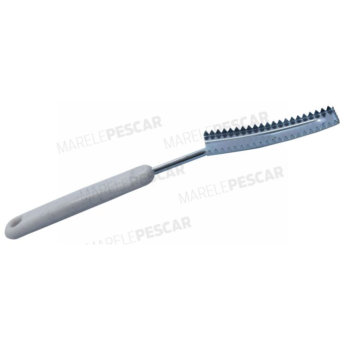 Fém eszköz az EnergoTeam termékcsaládból, kifejezetten halak pikkelyezésére tervezve.