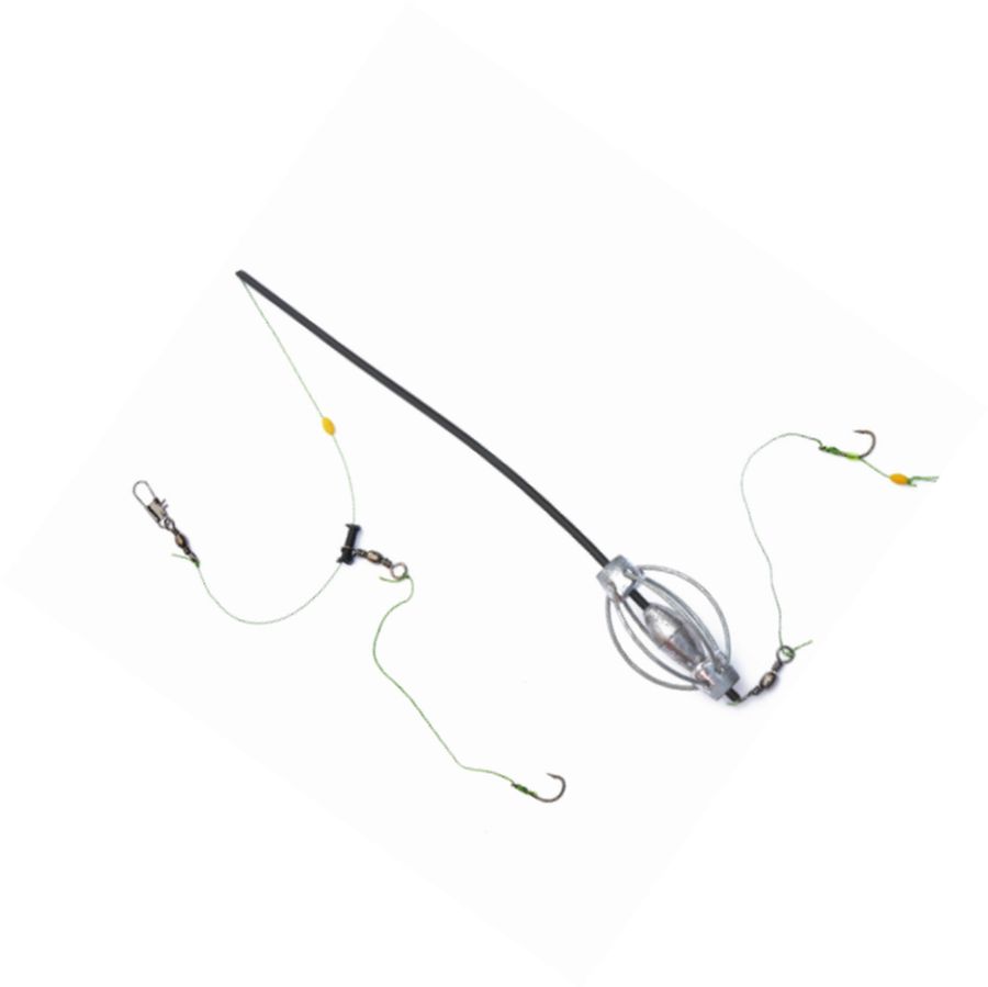 Az etetőkosár tartalma magvakat, szemestermény töretet, kukoricát, kendert, pelletet és puliszkát tartalmaz, hogy munkára kényszerítse a pontyot, és lekösse az etetőhelyen. Az etetőkosaras módszer aktívabb, mint más szerelékeké, amelyek akár 24 órán át is a vízben lehetnek. Az összeállítás két horgot tartalmaz, ami hatékony beakadásról gondoskodik a felhasznált csalitól függetlenül. Végén kapocs van a gyors szerelékcseréhez.